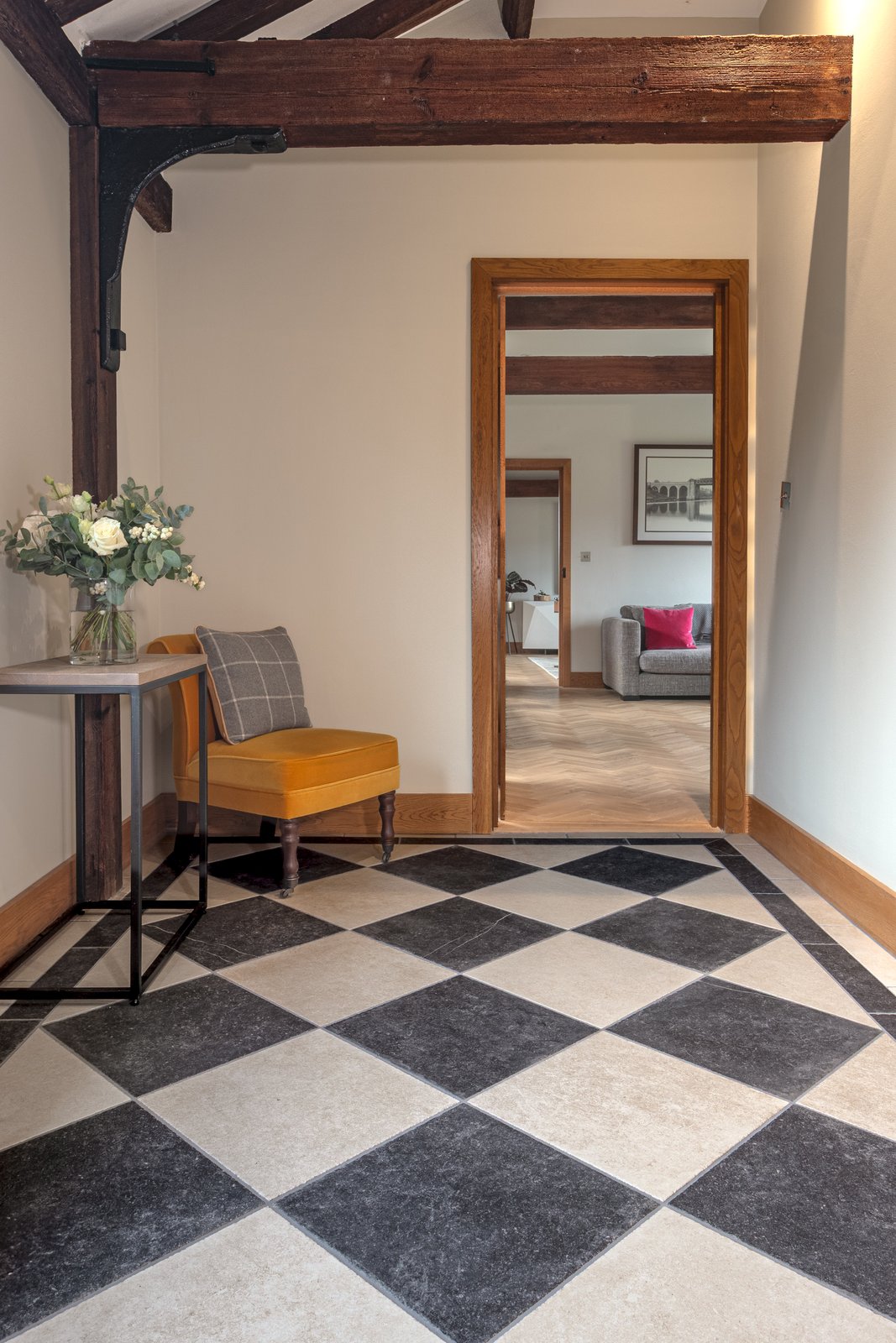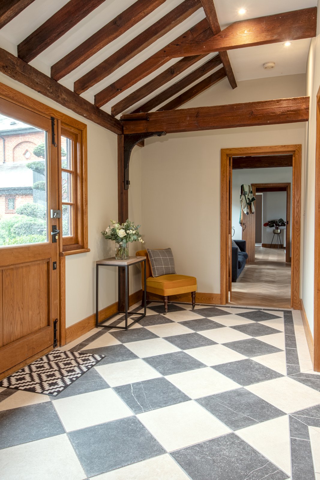 Transforming a tired, uninspiring hallway and utility room into a modern yet functional space, focusing on subtle enhancements that respect the character of the building.